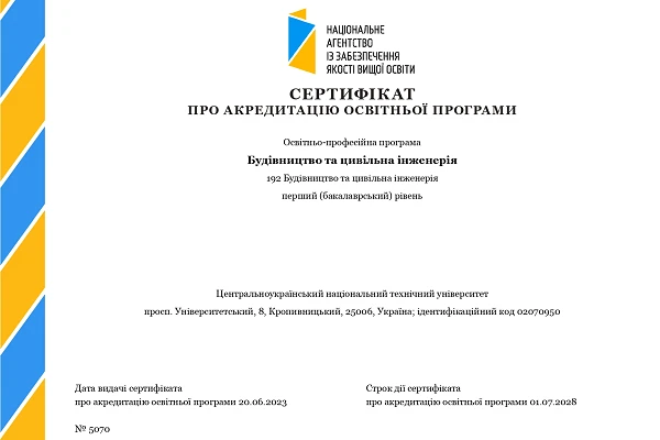 Акредитація освітньо-професійної програми 192 "Будівництво та цивільна інженерія"