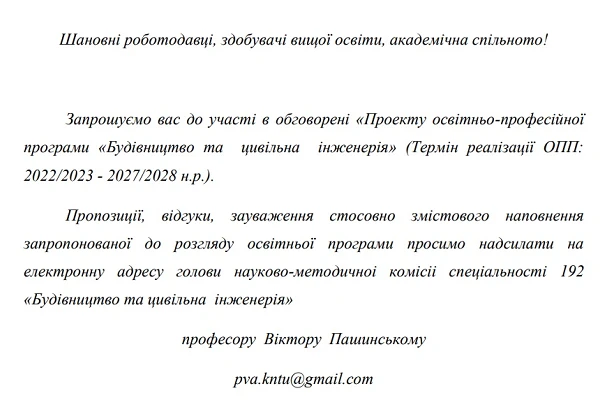 Обговорення проєкту ОПП «Будівництво та цивільна інженерія»
